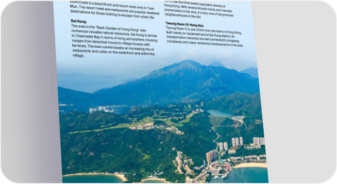 Neighbourhood Guide - New Territories Clear Water Bay Shatin/ Fo Tan Clear Water Bay is a bay on the east coast of Kowloon. Shatin is one of the most densely populated districts in the Famous of its beaches and outdoor activities with a country New Territories. New Town Plaza, the largest shopping mall living atmosphere, the area is popular among expatriates in the area, offers a wide variety of international boutiques, who look for a rural lifestyle. The area is scattered with supermarkets and eateries to the neighbourhood. townhouses of plentiful size, usually with private gardens Tai Po and pools. Tai Po has the third lowest population density in Gold Coast Hong Kong. With several bicycle tracks and riverside Gold Coast is a beachfront and resort-style area in Tuen promenades in the area, it is also one of the greenest Mun. The resort hotel and restaurants are popular weekend neighbourhoods in the city. destinations for those looking to escape from urban life. Tseung Kwan O/ Hang Hau Sai Kung Tseung Kwan O is one of the nine new towns in Hong Kong, The area is the “Back Garden of Hong Kong” with built mainly on reclaimed land in Sai Kung district. All numerous valuable natural resources. Sai Kung is similar transportation networks are well connected to shopping to Clearwater Bay in terms of living atmosphere, housing complexes and major residential developments in the area. ranges from detached house to village houses with terraces. The town centre boasts an increasing mix of restaurants and cafes on the waterfront and within the village. 14 GUIDE FOR LEASING A PROPERTY IN HONG KONG